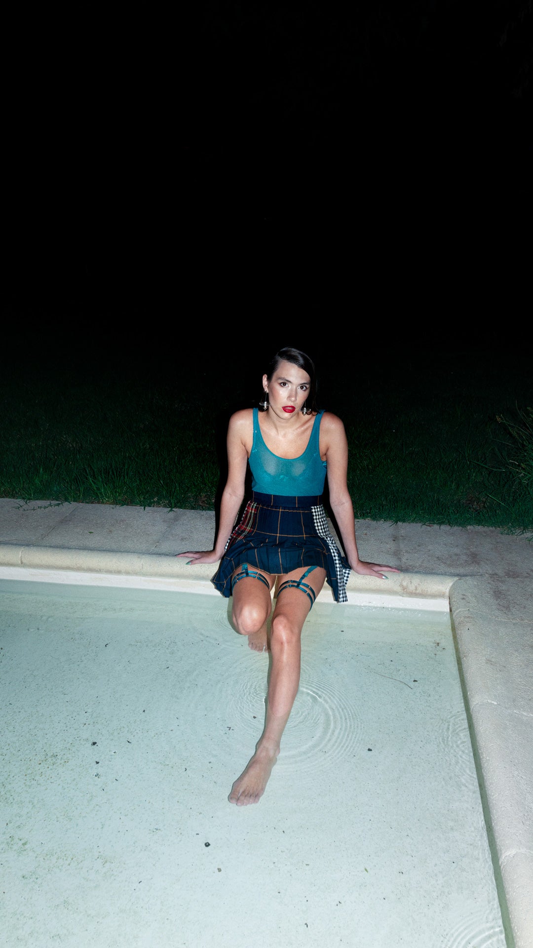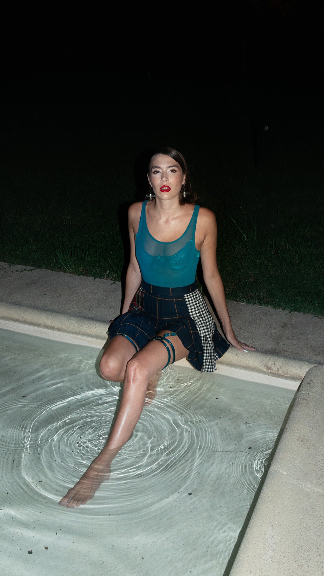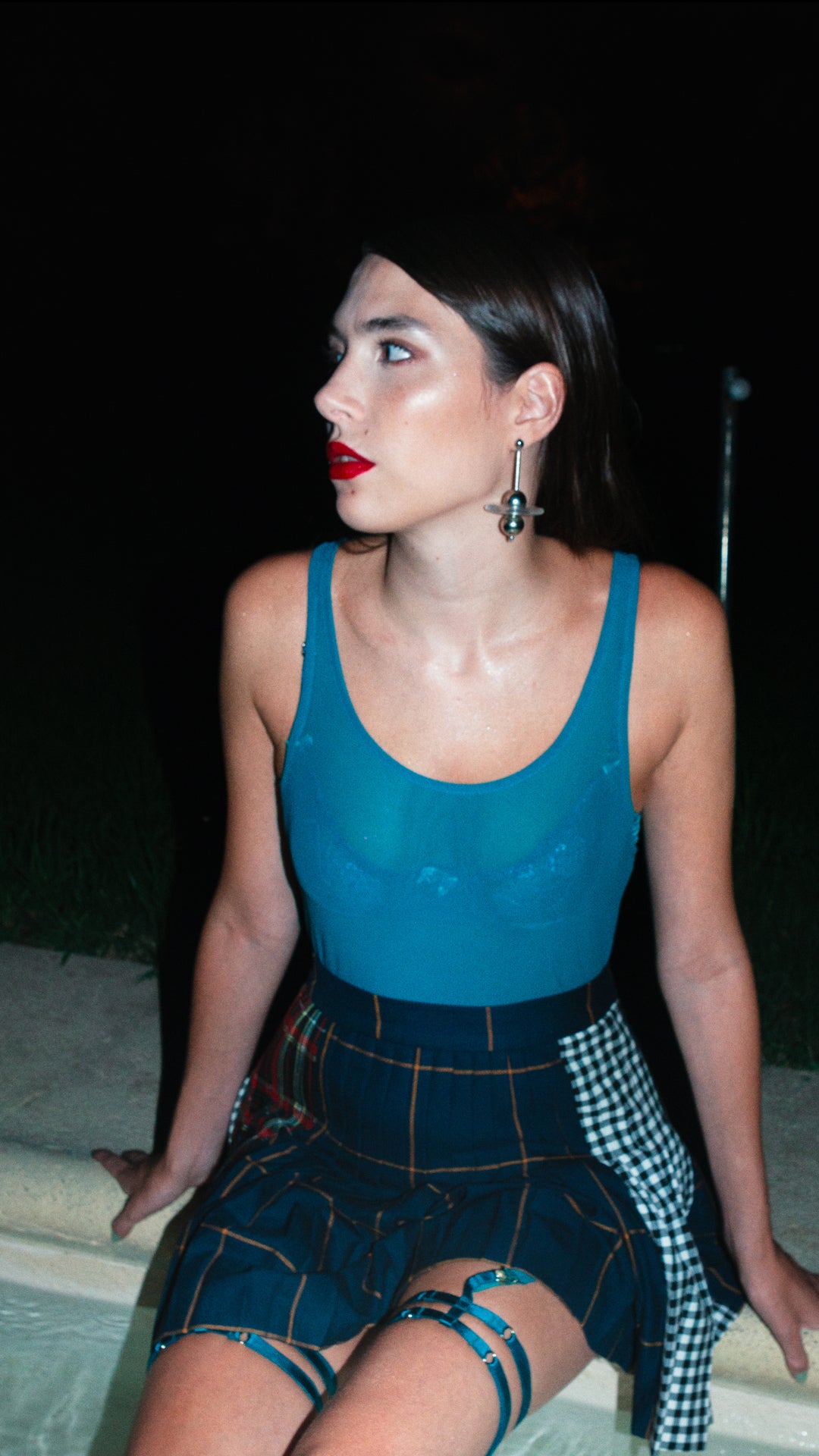 Slip made with soft, stretchy tulle. Hidden clip made of Zamak in the front and back for garters or thigh high stockings.